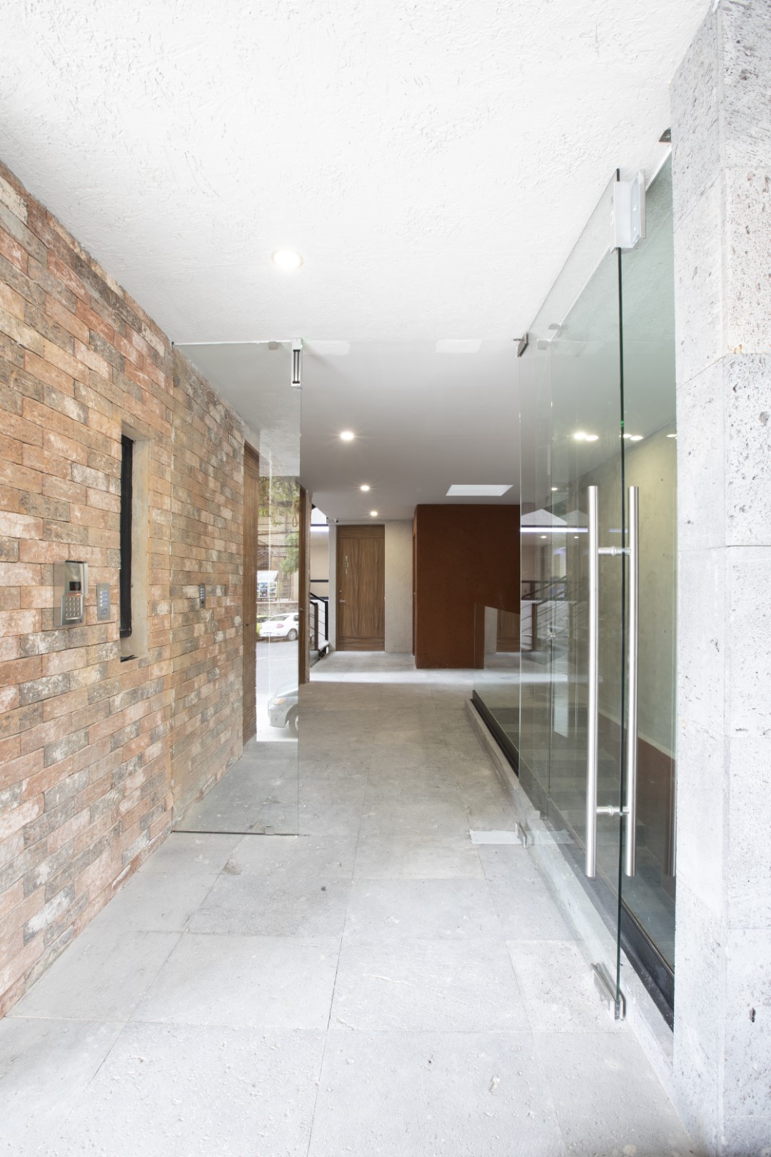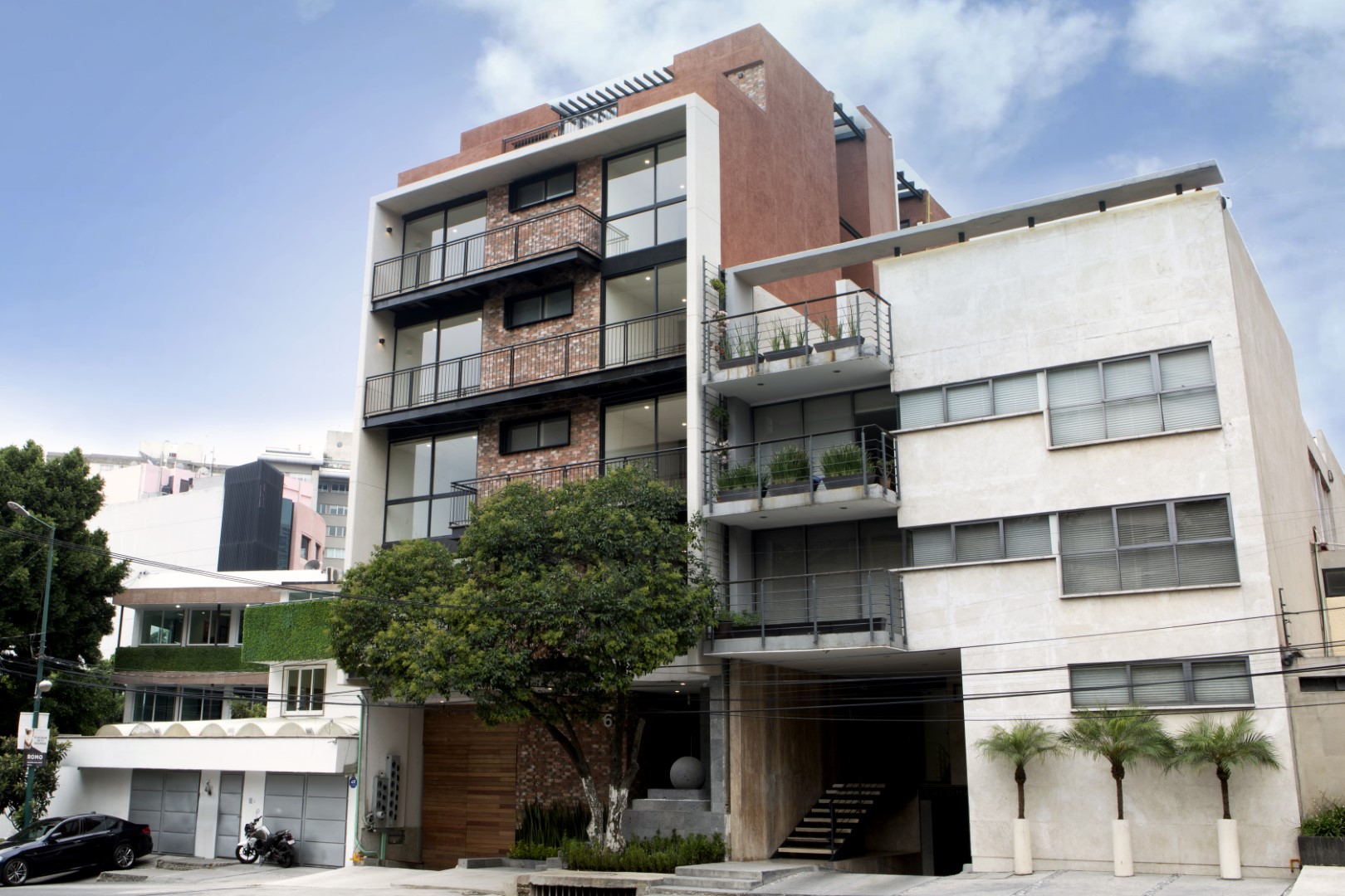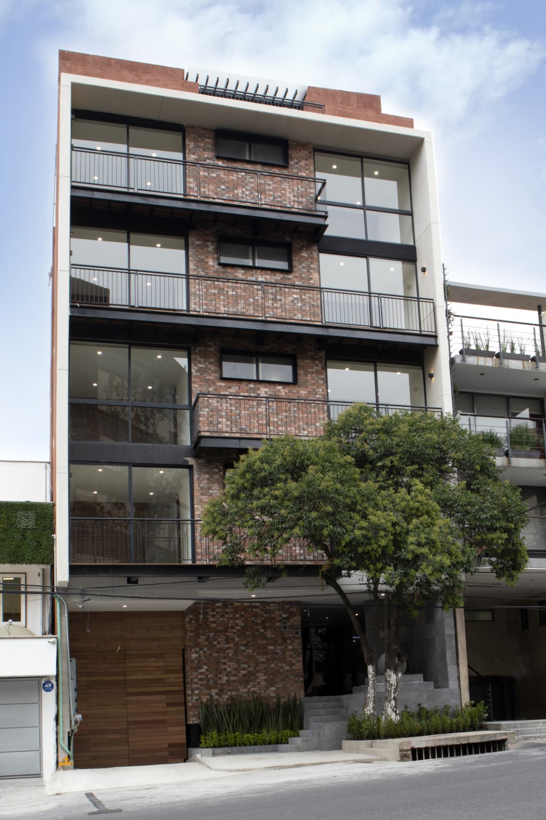 Exclusivo desarrollo residencial que cuenta con 9 departamentos en 5 niveles, cada uno de ellos tiene 74 m² aprox. de área habitable. Excelente distribución y acabados de lujo de primera calidad, pisos de madera de ingeniería, cancelería de aluminio, porcelanatos en pisos y muros de baños y amenidades de primer nivel.