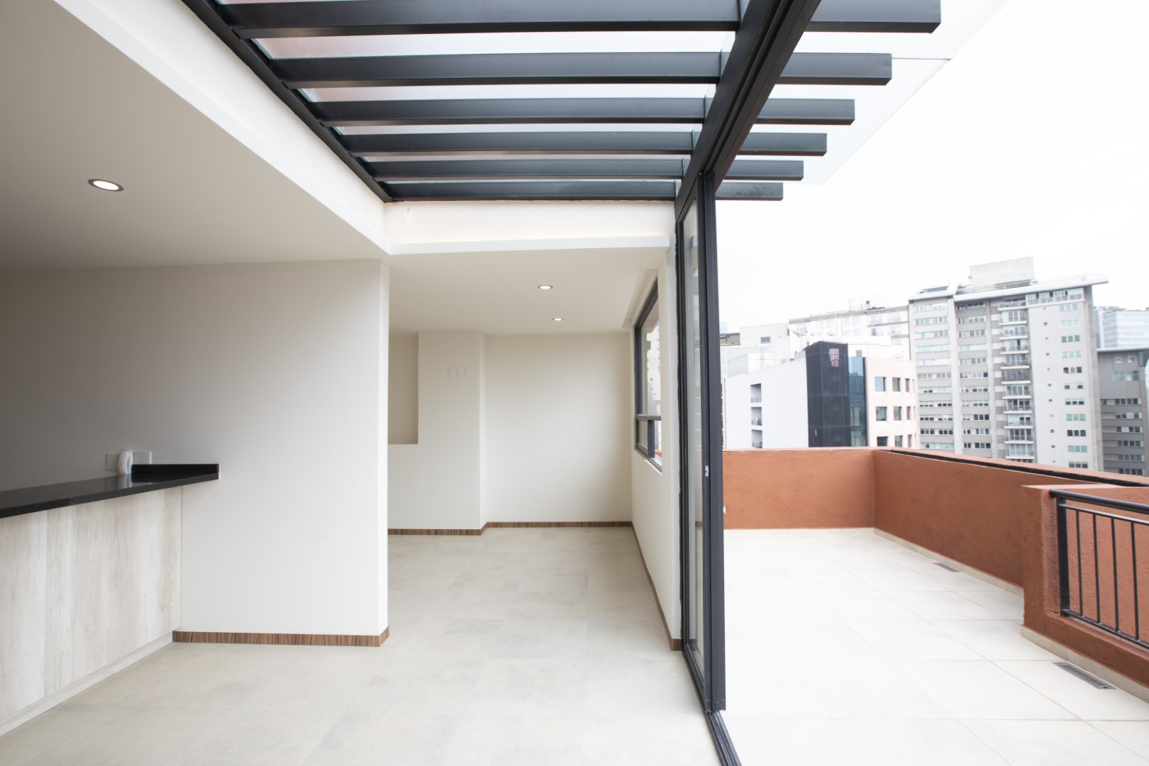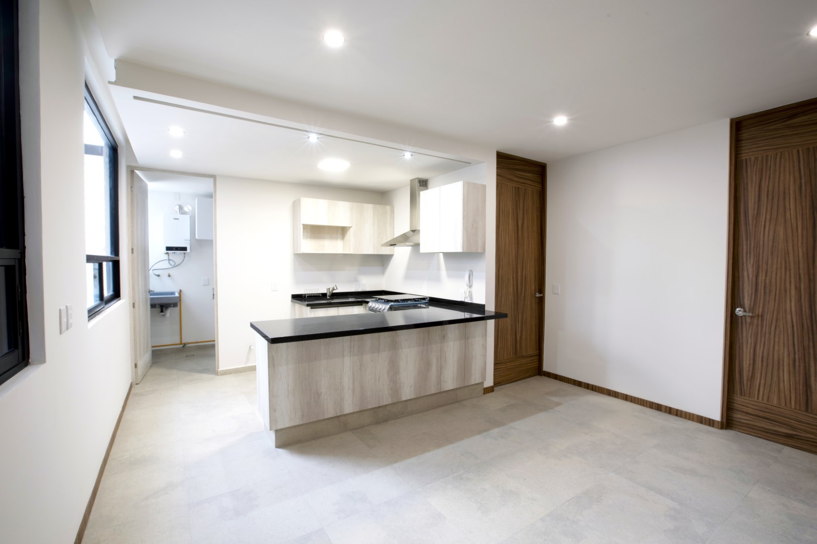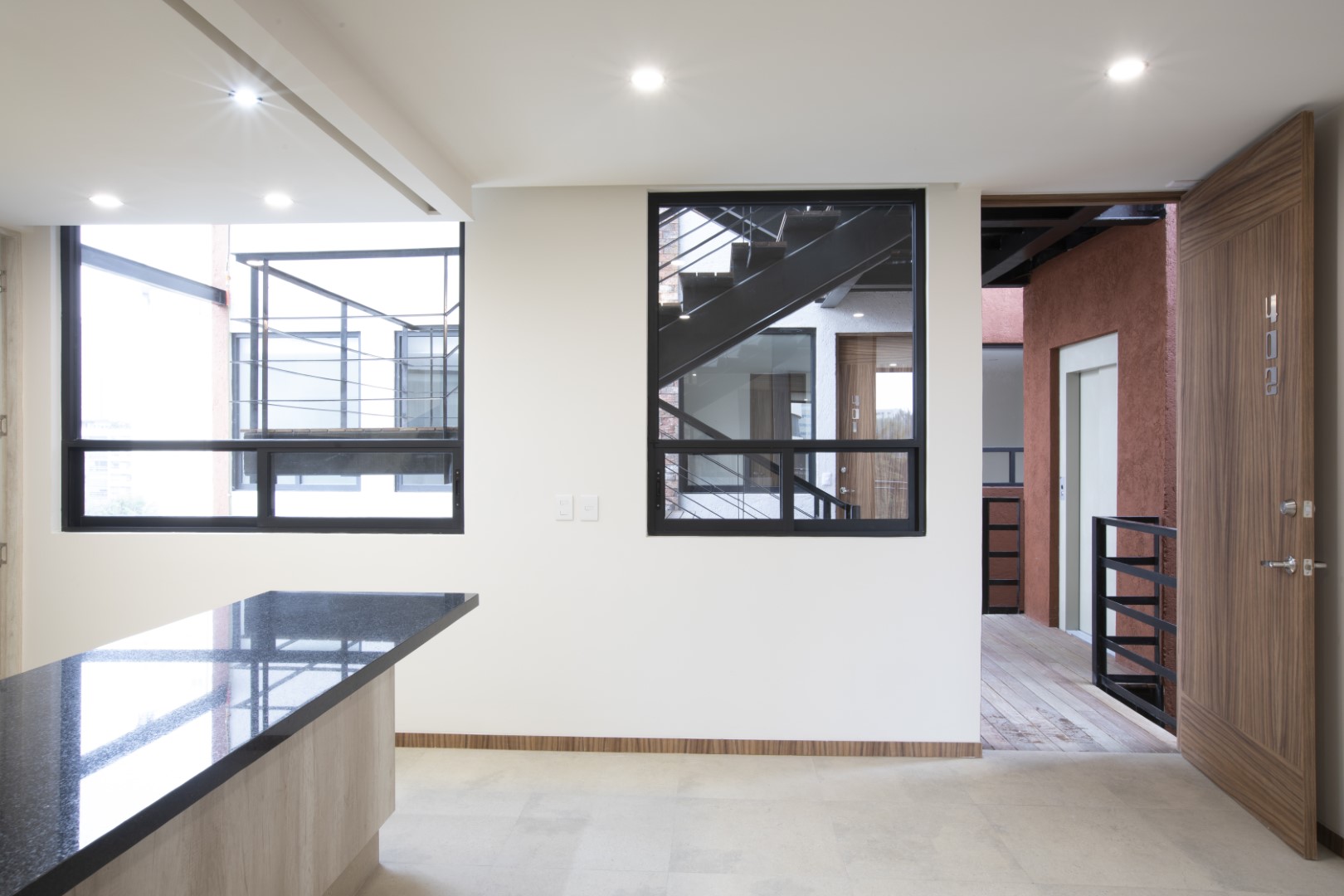 Exclusivo desarrollo residencial que cuenta con 9 departamentos en 5 niveles, cada uno de ellos tiene 74 m² aprox. de área habitable. Excelente distribución y acabados de lujo de primera calidad, pisos de madera de ingeniería, cancelería de aluminio, porcelanatos en pisos y muros de baños y amenidades de primer nivel.